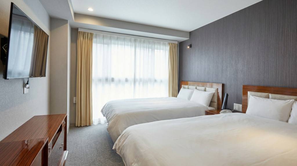 広々とダブルベッドを独り占め、お子様と添い寝にも最適です。